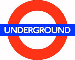 The iconic roundel symbolizing the London Underground was designed by typographer Edward Johnston and has been in use since 1918. Above ground the words on the blue bar simply state UNDERGROUND. Once you are underground the names of the stations will be listed on the blue bar instead.